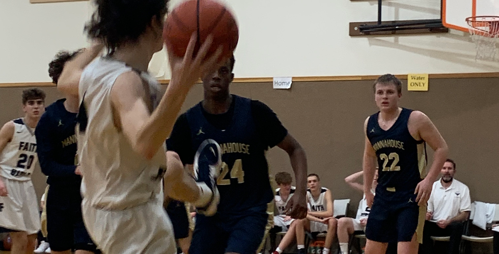 The game came down to the wire and with under 2 minutes to go, Mannahouse lead 55-47, but Faith Bible fought until the bitter end. A clutch 3-point shot by freshman Zeke Cask brought Faith Bible within 5 points. After a missed 1-and-1 opportunity by Mannahouse, Faith Bible drove down and scored again bringing the score to 55-52 in favor Mannahouse. Mannahouse turned the ball over again and it looked like Faith Bible was going to tie the game. With 13 seconds left, Faith Bible launched a shot to tie the game, but the shot went wide. Senior Captain Matthew Fachiol secured a rebound, but the next shot also missed. In the scramble for the rebound, Faith Bible traveled and gave the ball back to Mannahouse. Faith Bible fouled on the inbounds pass and sophomore Jaydon Hall iced the game for Mannahouse by making both free throws with 3 seconds remaining.